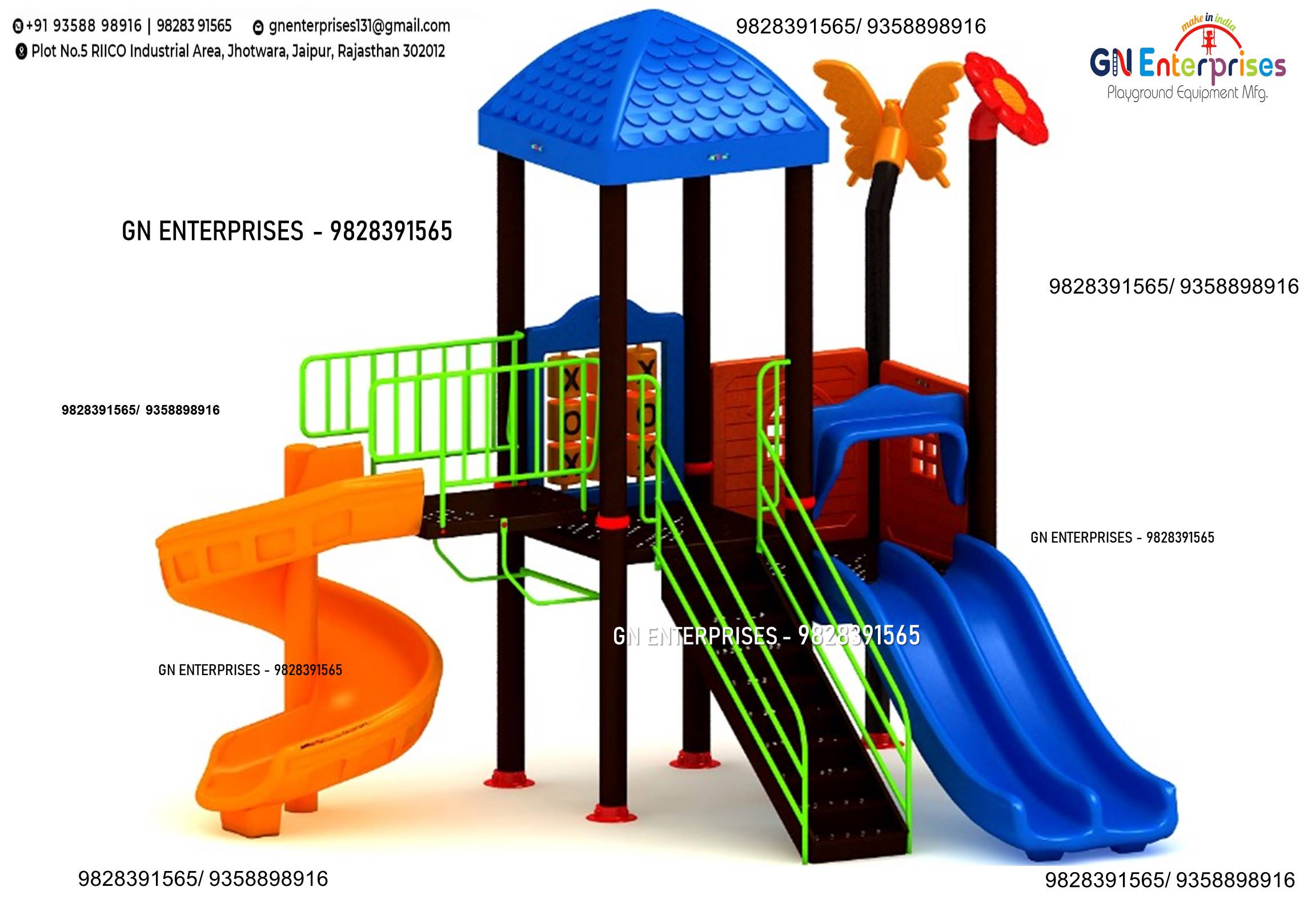 GN Enterprises are the best Leading Outdoor Multiplay Station in Amritsar, Punjab. Manufacturer and Supplier of All types of Outdoor Playground Manufacturer in Amritsar, Punjab. Our all Equipment are innovative Safe and full of fun for children. Product Range: Outdoor swing, Climber for School, Children Park Equipment. Customized Play Equipment as per customer Requirement and Area. Range of Products - Multiplay System, Fiber Multiplay Station, Outdoor playground Multiplay station, Children Park Multiplay Station and School Multiplay System. Playground Slide, Roller slide, Spiral slide, FRP Slides, LLDPE Slides, Tube Slide, Curve Slides. Playground Swing, Family Swing, Double Swing, Circular Swing, Arch Swing, Multi swing, India Leading Manufacturer of Outdoor Park Equipment and supplied more than Thousand Multiplay system in Kids Play Areas, Society Parks, Builders, Schools.